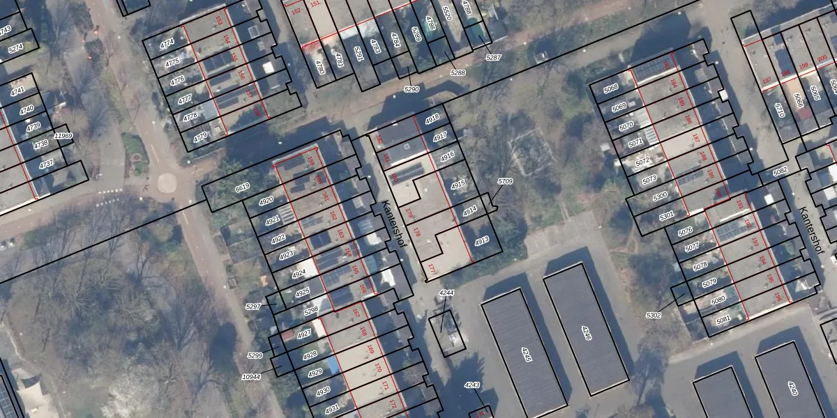 Kantershof 179 is gelegen op kadastraal perceel WPK02L4915. Deze kadastrale aanduiding is uniek en wordt gebruikt door het Kadaster om eigendomsrechten en andere zakelijke rechten vast te leggen. Het perceel maakt onderdeel uit van de kadastrale gemeente Weesperkarspel.