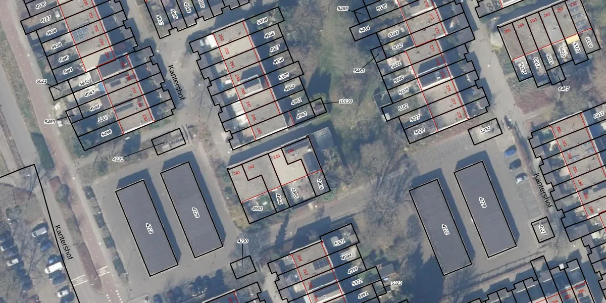 Kantershof 244 is gelegen op kadastraal perceel WPK02L4966. Deze kadastrale aanduiding is uniek en wordt gebruikt door het Kadaster om eigendomsrechten en andere zakelijke rechten vast te leggen. Het perceel maakt onderdeel uit van de kadastrale gemeente Weesperkarspel.