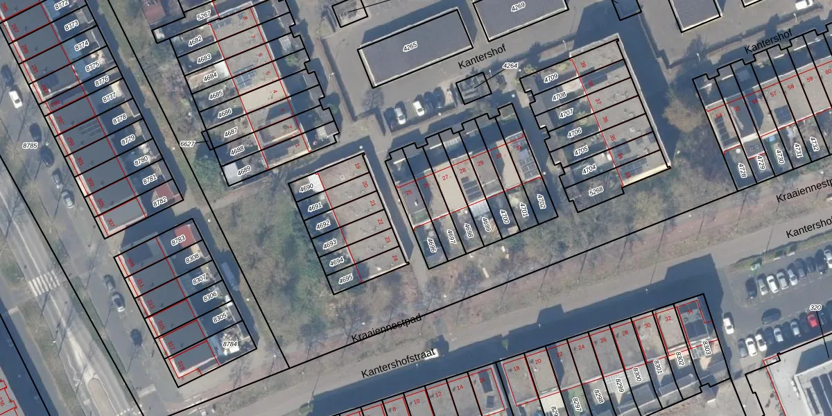 Kantershof 25 is gelegen op kadastraal perceel WPK02L4696. Deze kadastrale aanduiding is uniek en wordt gebruikt door het Kadaster om eigendomsrechten en andere zakelijke rechten vast te leggen. Het perceel maakt onderdeel uit van de kadastrale gemeente Weesperkarspel.