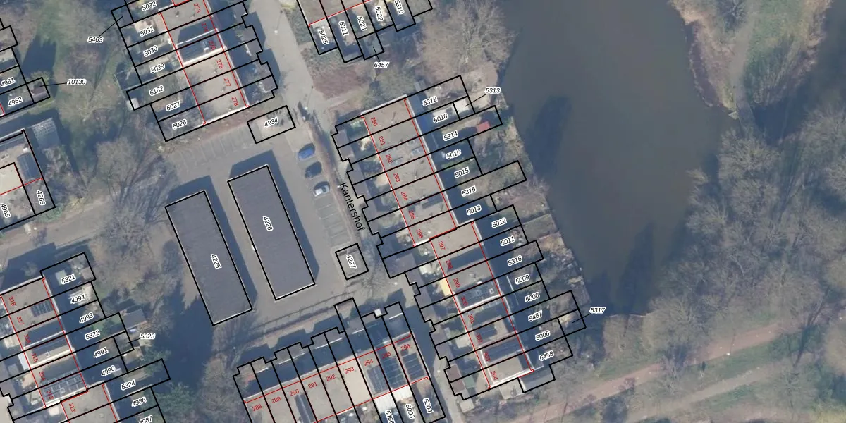 Kantershof 285 is gelegen op kadastraal perceel WPK02L5315. Deze kadastrale aanduiding is uniek en wordt gebruikt door het Kadaster om eigendomsrechten en andere zakelijke rechten vast te leggen. Het perceel maakt onderdeel uit van de kadastrale gemeente Weesperkarspel.