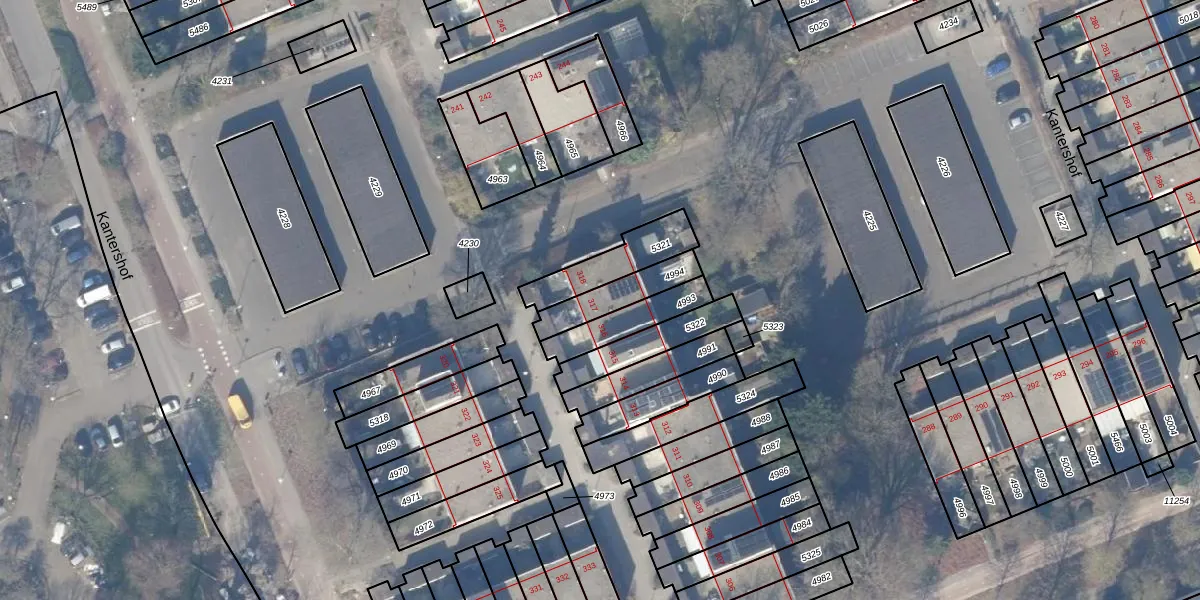 Kantershof 317 is gelegen op kadastraal perceel WPK02L4994. Deze kadastrale aanduiding is uniek en wordt gebruikt door het Kadaster om eigendomsrechten en andere zakelijke rechten vast te leggen. Het perceel maakt onderdeel uit van de kadastrale gemeente Weesperkarspel.