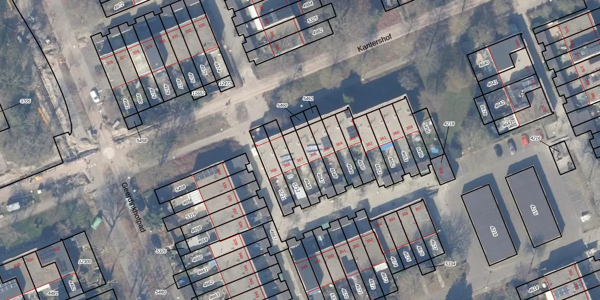 Kantershof 367 is gelegen op kadastraal perceel WPK02L4646. Deze kadastrale aanduiding is uniek en wordt gebruikt door het Kadaster om eigendomsrechten en andere zakelijke rechten vast te leggen. Het perceel maakt onderdeel uit van de kadastrale gemeente Weesperkarspel.