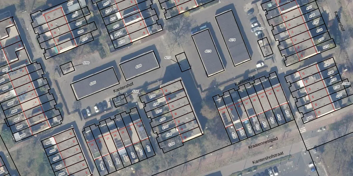 Het perceel waarop Kantershof 39 staat heeft een oppervlakte van 123 m². Dit is een middelgroot perceel. De perceeloppervlakte wordt geregistreerd door het Kadaster. Gedetailleerde informatie over de maten van dit perceel kunt u vinden in het rapport Kadastrale kaart met maatvoering van Kantershof 39.