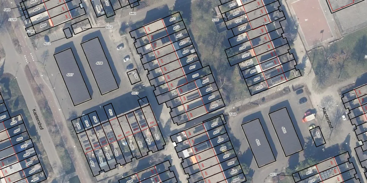 Kantershof 406 is gelegen op kadastraal perceel WPK02L4605. Deze kadastrale aanduiding is uniek en wordt gebruikt door het Kadaster om eigendomsrechten en andere zakelijke rechten vast te leggen. Het perceel maakt onderdeel uit van de kadastrale gemeente Weesperkarspel.