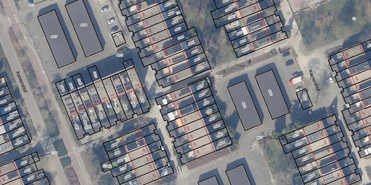 Kantershof 438 is gelegen op kadastraal perceel WPK02L4601. Deze kadastrale aanduiding is uniek en wordt gebruikt door het Kadaster om eigendomsrechten en andere zakelijke rechten vast te leggen. Het perceel maakt onderdeel uit van de kadastrale gemeente Weesperkarspel.