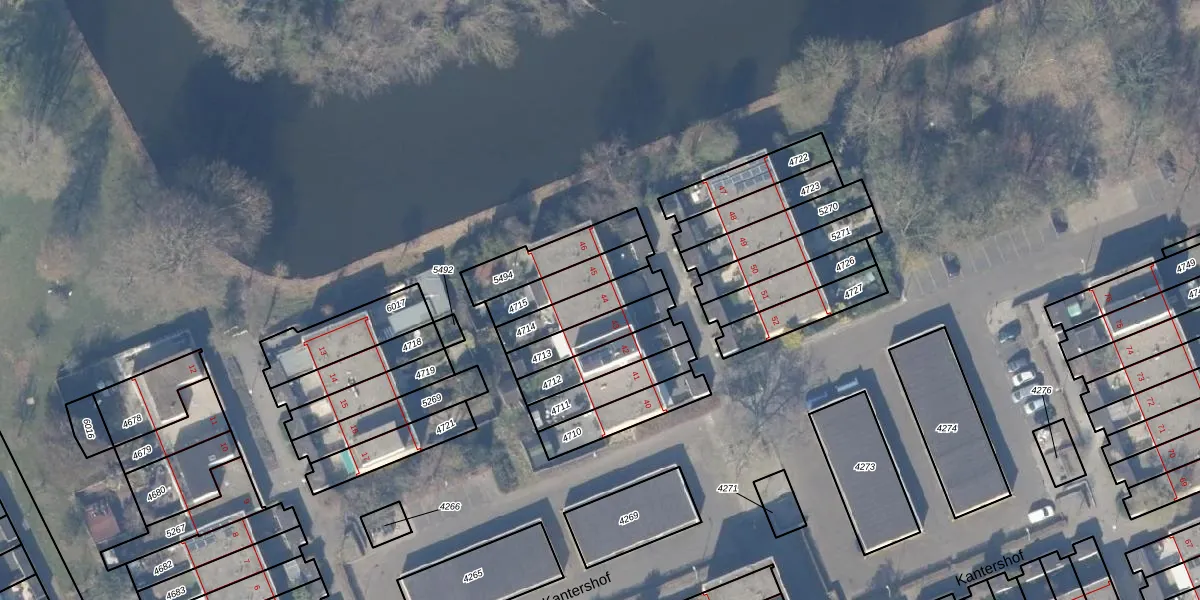 Kantershof 44 is gelegen op kadastraal perceel WPK02L4714. Deze kadastrale aanduiding is uniek en wordt gebruikt door het Kadaster om eigendomsrechten en andere zakelijke rechten vast te leggen. Het perceel maakt onderdeel uit van de kadastrale gemeente Weesperkarspel.