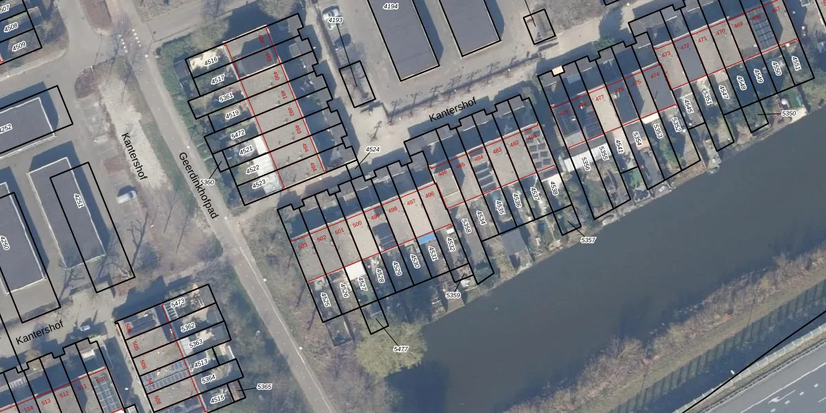 Kantershof 497 is gelegen op kadastraal perceel WPK02L4531. Deze kadastrale aanduiding is uniek en wordt gebruikt door het Kadaster om eigendomsrechten en andere zakelijke rechten vast te leggen. Het perceel maakt onderdeel uit van de kadastrale gemeente Weesperkarspel.