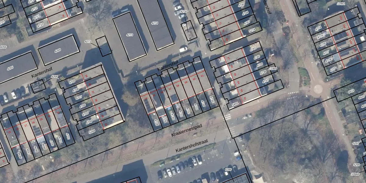 Kantershof 58 is gelegen op kadastraal perceel WPK02L4732. Deze kadastrale aanduiding is uniek en wordt gebruikt door het Kadaster om eigendomsrechten en andere zakelijke rechten vast te leggen. Het perceel maakt onderdeel uit van de kadastrale gemeente Weesperkarspel.