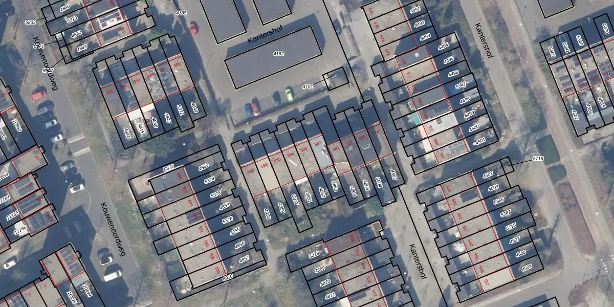 Kantershof 583 is gelegen op kadastraal perceel WPK02L4862. Deze kadastrale aanduiding is uniek en wordt gebruikt door het Kadaster om eigendomsrechten en andere zakelijke rechten vast te leggen. Het perceel maakt onderdeel uit van de kadastrale gemeente Weesperkarspel.