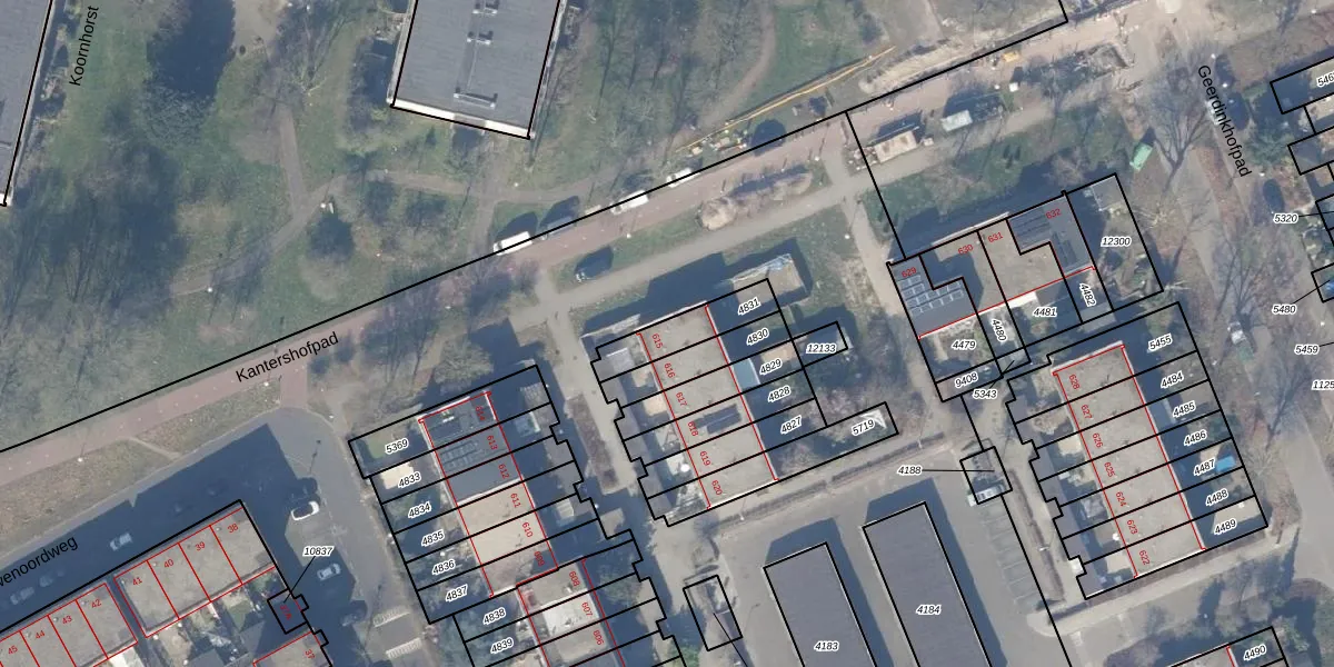Kantershof 615 is gelegen op kadastraal perceel WPK02L4831. Deze kadastrale aanduiding is uniek en wordt gebruikt door het Kadaster om eigendomsrechten en andere zakelijke rechten vast te leggen. Het perceel maakt onderdeel uit van de kadastrale gemeente Weesperkarspel.