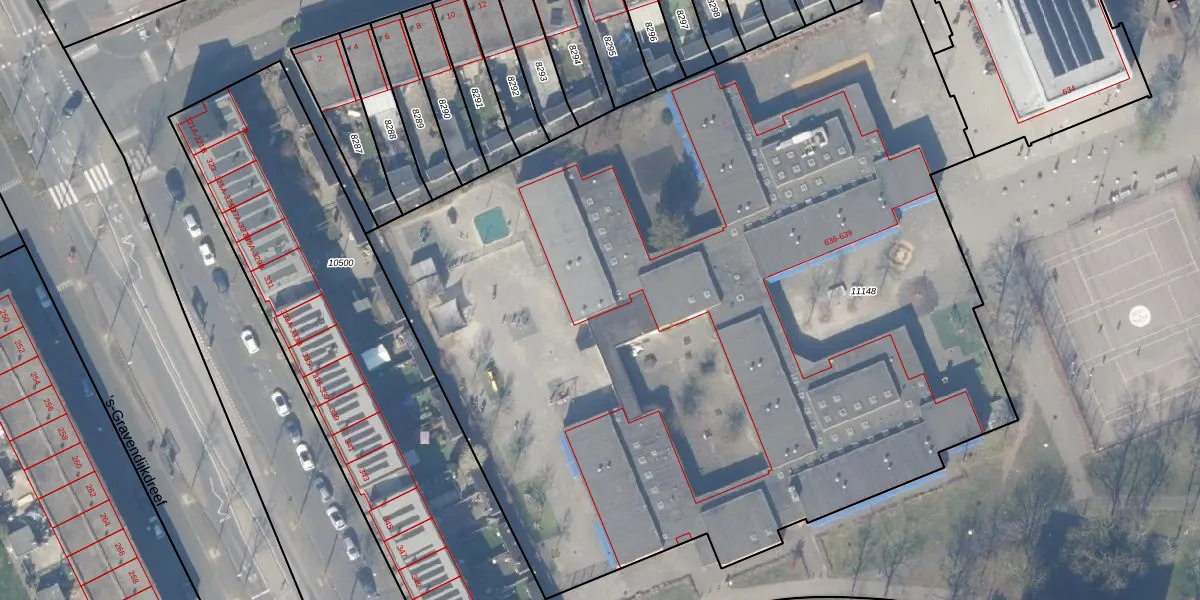 Het perceel waarop Kantershof 639 staat heeft een oppervlakte van 6730 m². Dit is een zeer groot perceel. De perceeloppervlakte wordt geregistreerd door het Kadaster. Gedetailleerde informatie over de maten van dit perceel kunt u vinden in het rapport Kadastrale kaart met maatvoering van Kantershof 639.