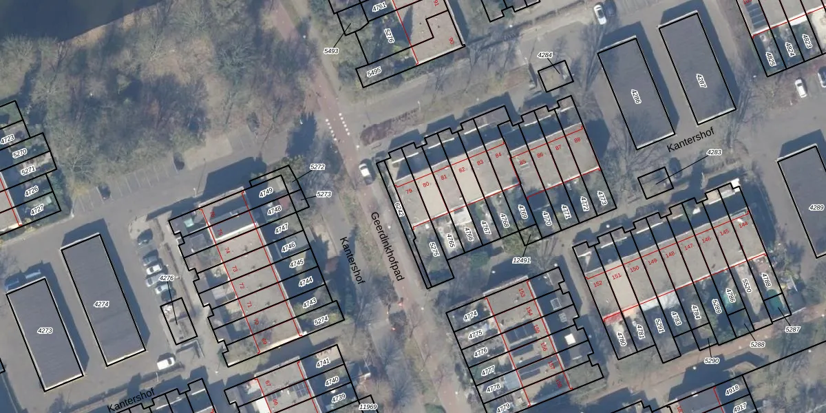 Kantershof 79 is gelegen op kadastraal perceel WPK02L5275. Deze kadastrale aanduiding is uniek en wordt gebruikt door het Kadaster om eigendomsrechten en andere zakelijke rechten vast te leggen. Het perceel maakt onderdeel uit van de kadastrale gemeente Weesperkarspel.