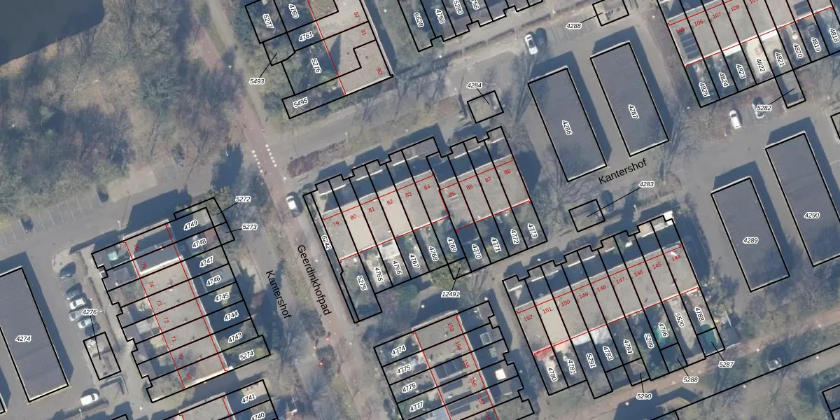 Kantershof 83 is gelegen op kadastraal perceel WPK02L4768. Deze kadastrale aanduiding is uniek en wordt gebruikt door het Kadaster om eigendomsrechten en andere zakelijke rechten vast te leggen. Het perceel maakt onderdeel uit van de kadastrale gemeente Weesperkarspel.