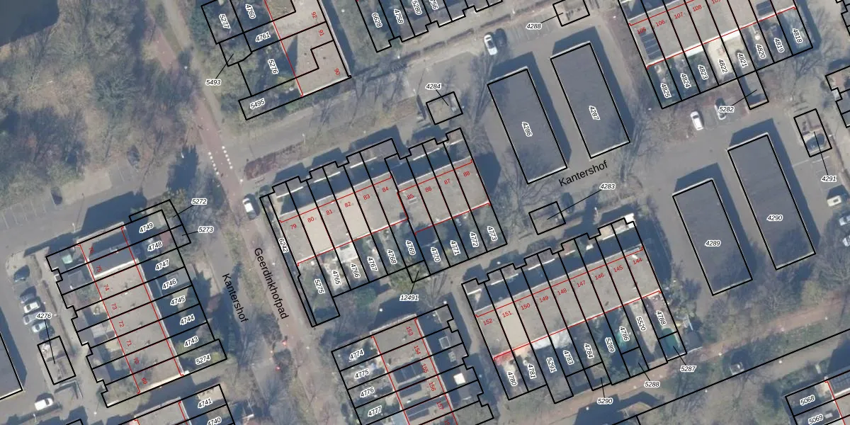 Kantershof 85 is gelegen op kadastraal perceel WPK02L4770. Deze kadastrale aanduiding is uniek en wordt gebruikt door het Kadaster om eigendomsrechten en andere zakelijke rechten vast te leggen. Het perceel maakt onderdeel uit van de kadastrale gemeente Weesperkarspel.