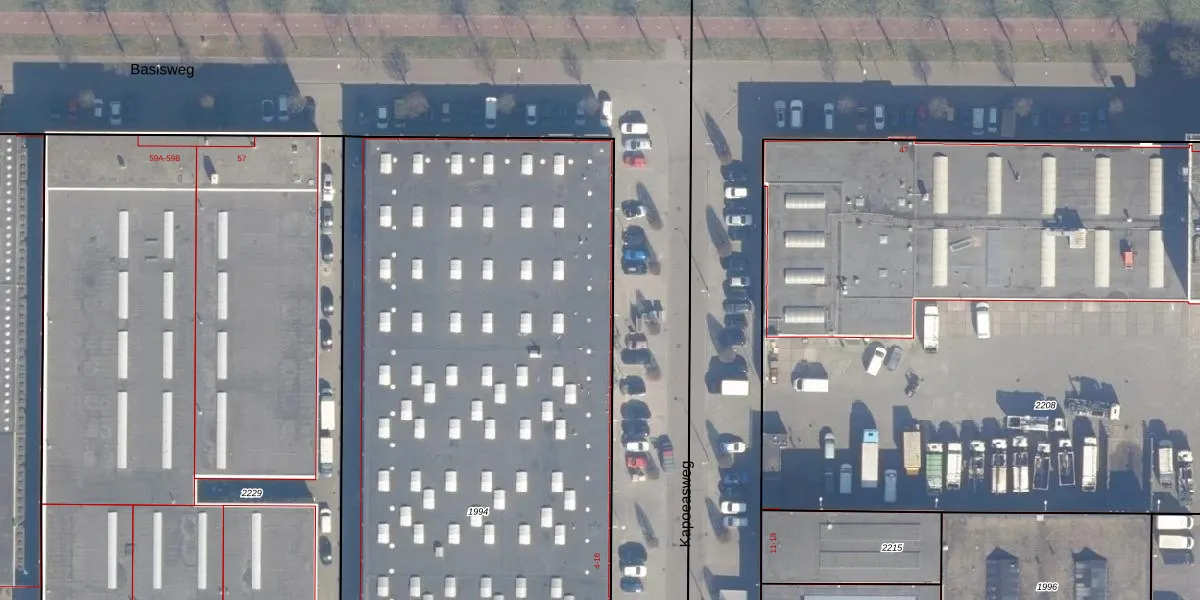 Het perceel waarop Kapoeasweg 6 staat heeft een oppervlakte van 5582 m². Dit is een zeer groot perceel. De perceeloppervlakte wordt geregistreerd door het Kadaster. Gedetailleerde informatie over de maten van dit perceel kunt u vinden in het rapport Kadastrale kaart met maatvoering van Kapoeasweg 6.