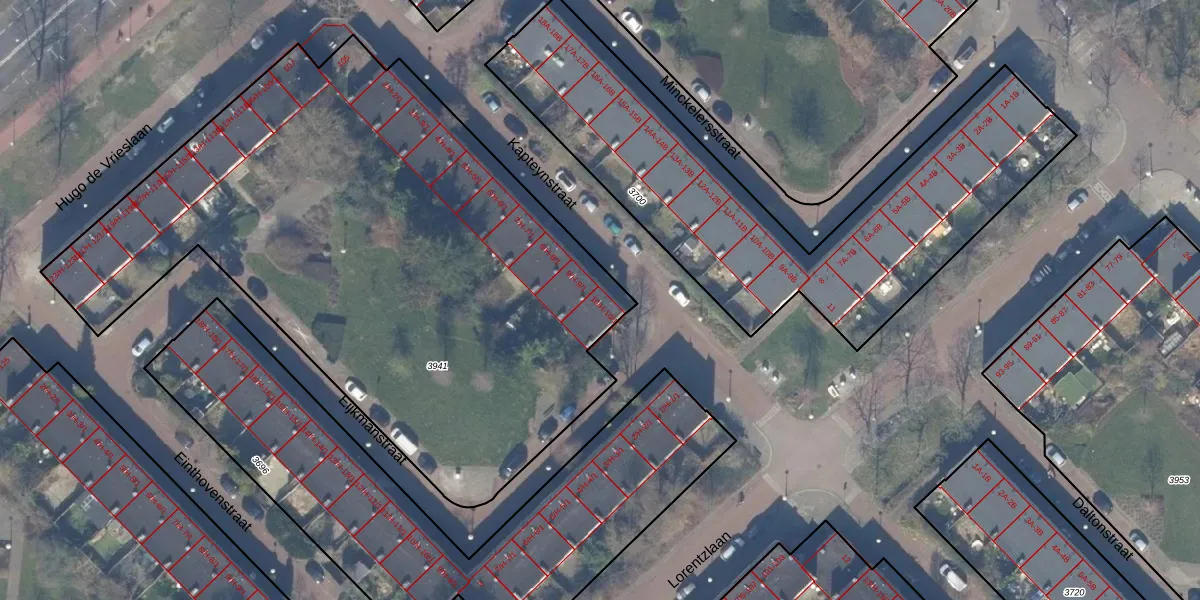 Het perceel waarop Kapteynstraat 10-1 staat heeft een oppervlakte van 3692 m². Dit is een zeer groot perceel. De perceeloppervlakte wordt geregistreerd door het Kadaster. Gedetailleerde informatie over de maten van dit perceel kunt u vinden in het rapport Kadastrale kaart met maatvoering van Kapteynstraat 10-1.