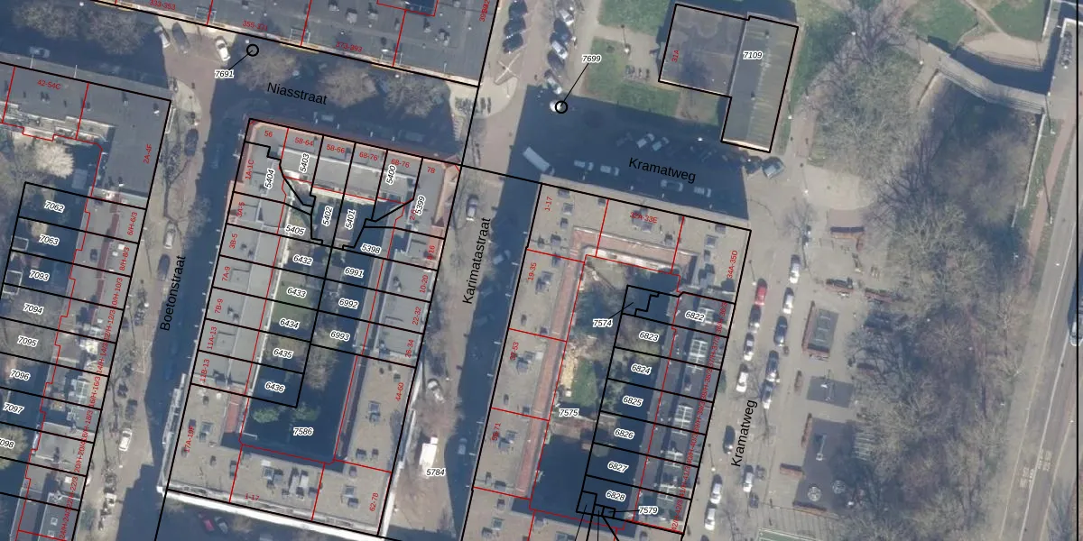 Karimatastraat 25 is gelegen op kadastraal perceel ASD19W7575. Deze kadastrale aanduiding is uniek en wordt gebruikt door het Kadaster om eigendomsrechten en andere zakelijke rechten vast te leggen. Het perceel maakt onderdeel uit van de kadastrale gemeente Amsterdam.