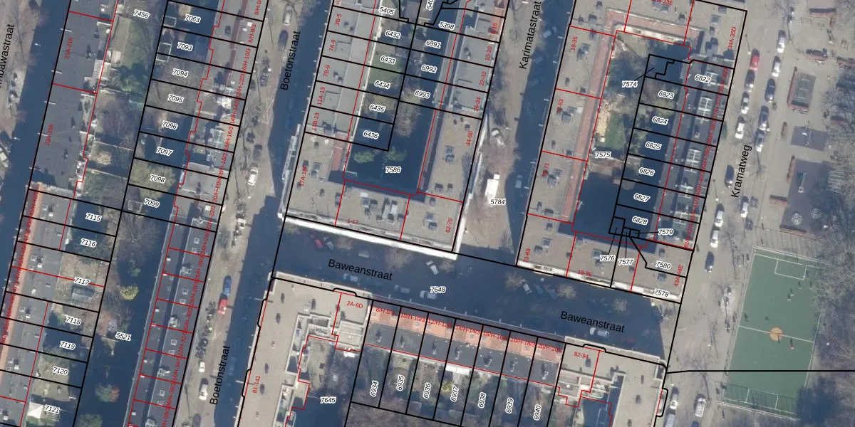 Karimatastraat 64 is gelegen op kadastraal perceel ASD19W7586. Deze kadastrale aanduiding is uniek en wordt gebruikt door het Kadaster om eigendomsrechten en andere zakelijke rechten vast te leggen. Het perceel maakt onderdeel uit van de kadastrale gemeente Amsterdam.