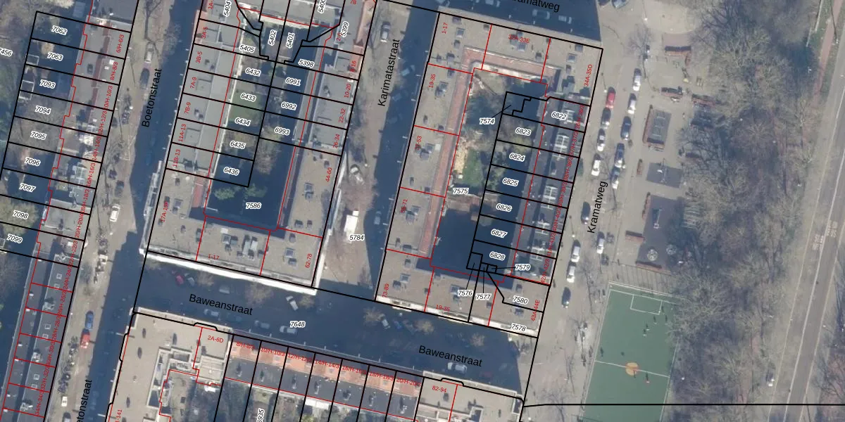 Karimatastraat 67 is gelegen op kadastraal perceel ASD19W7575. Deze kadastrale aanduiding is uniek en wordt gebruikt door het Kadaster om eigendomsrechten en andere zakelijke rechten vast te leggen. Het perceel maakt onderdeel uit van de kadastrale gemeente Amsterdam.