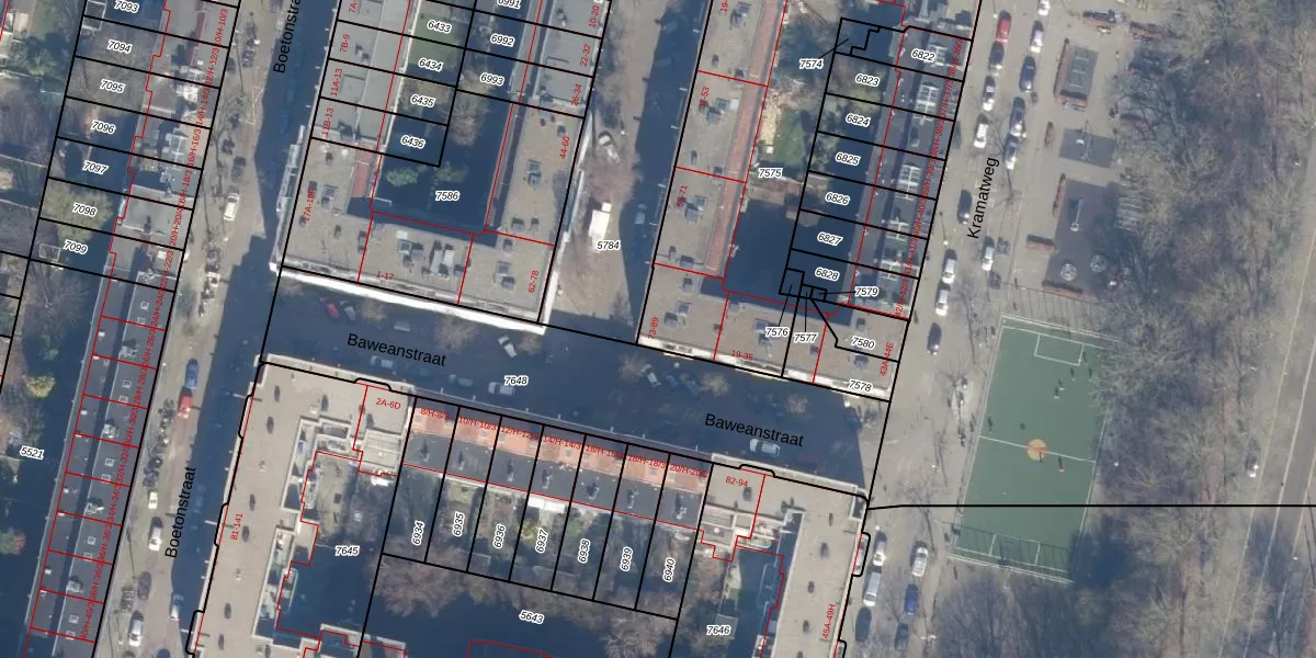 Het adres is gelegen op perceel 7575 in de sectie W en de kadastrale gemeente Amsterdam. De kadastrale aanduiding is aldus ASD19-W-7575. De gemiddelde perceeloppervlakte in de kadastrale gemeente Amsterdam is 1563,05 m². Dit perceel is met zijn 1726 m² dus groter dan gemiddeld. De grootste perceeloppervlakte in de kadastrale gemeente is 17,9 ha. De kleinste oppervlakte bedraagt 0 m². Op het perceel zijn 68 adressen aanwezig. De laatste wijziging in het de Basisregistratie Kadaster (BRK) was op 05-02-2007.