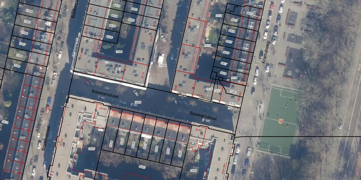 Het adres is gelegen op perceel 7575 in de sectie W en de kadastrale gemeente Amsterdam. De kadastrale aanduiding is aldus ASD19-W-7575. De gemiddelde perceeloppervlakte in de kadastrale gemeente Amsterdam is 1563,05 m². Dit perceel is met zijn 1726 m² dus groter dan gemiddeld. De grootste perceeloppervlakte in de kadastrale gemeente is 17,9 ha. De kleinste oppervlakte bedraagt 0 m². Op het perceel zijn 68 adressen aanwezig. De huidige grenzen van het perceel zijn digitaal in de Basisregistratie Kadaster (BRK) geregistreerd op 05-02-2007.