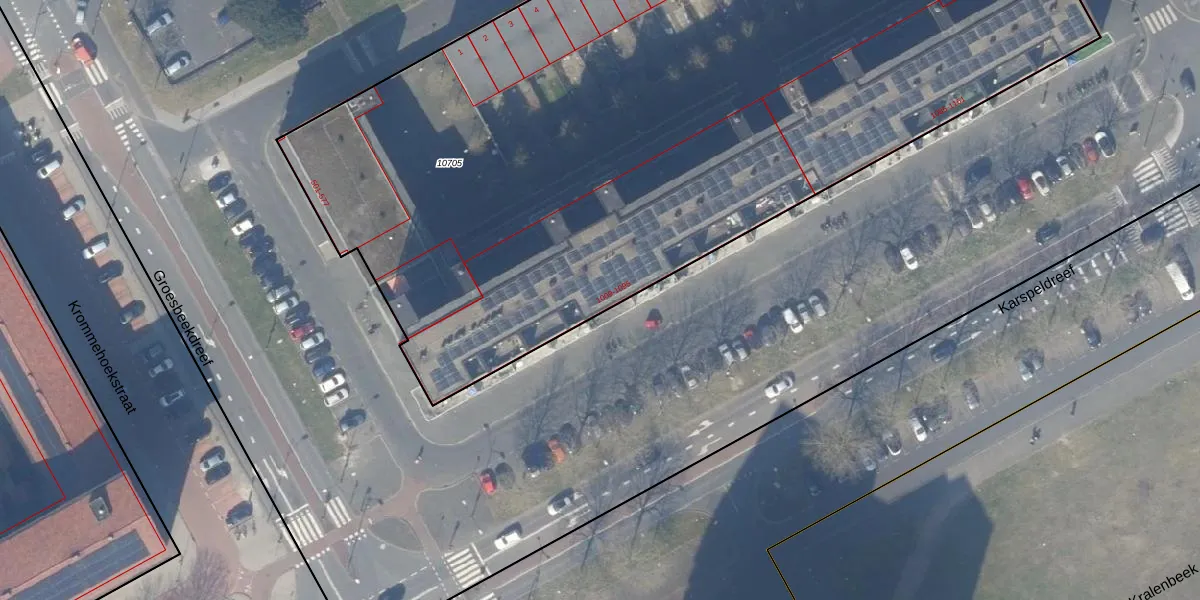 Het perceel waarop Karspeldreef 1043 staat heeft een oppervlakte van 6535 m². Dit is een zeer groot perceel. De perceeloppervlakte wordt geregistreerd door het Kadaster. Gedetailleerde informatie over de maten van dit perceel kunt u vinden in het rapport Kadastrale kaart met maatvoering van Karspeldreef 1043.