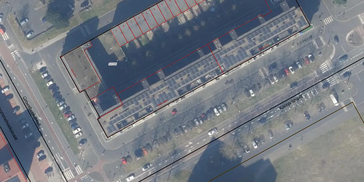 Het perceel waarop Karspeldreef 1063 staat heeft een oppervlakte van 6535 m². Dit is een zeer groot perceel. De perceeloppervlakte wordt geregistreerd door het Kadaster. Gedetailleerde informatie over de maten van dit perceel kunt u vinden in het rapport Kadastrale kaart met maatvoering van Karspeldreef 1063.