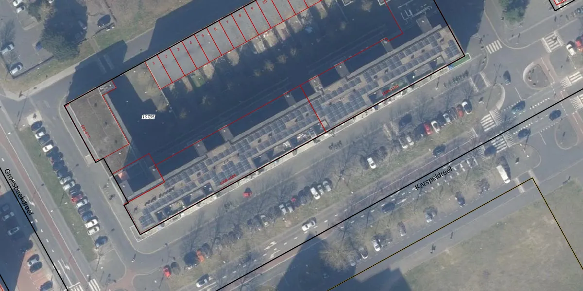 Karspeldreef 1079 is gelegen op kadastraal perceel WPK02L10705. Deze kadastrale aanduiding is uniek en wordt gebruikt door het Kadaster om eigendomsrechten en andere zakelijke rechten vast te leggen. Het perceel maakt onderdeel uit van de kadastrale gemeente Weesperkarspel.