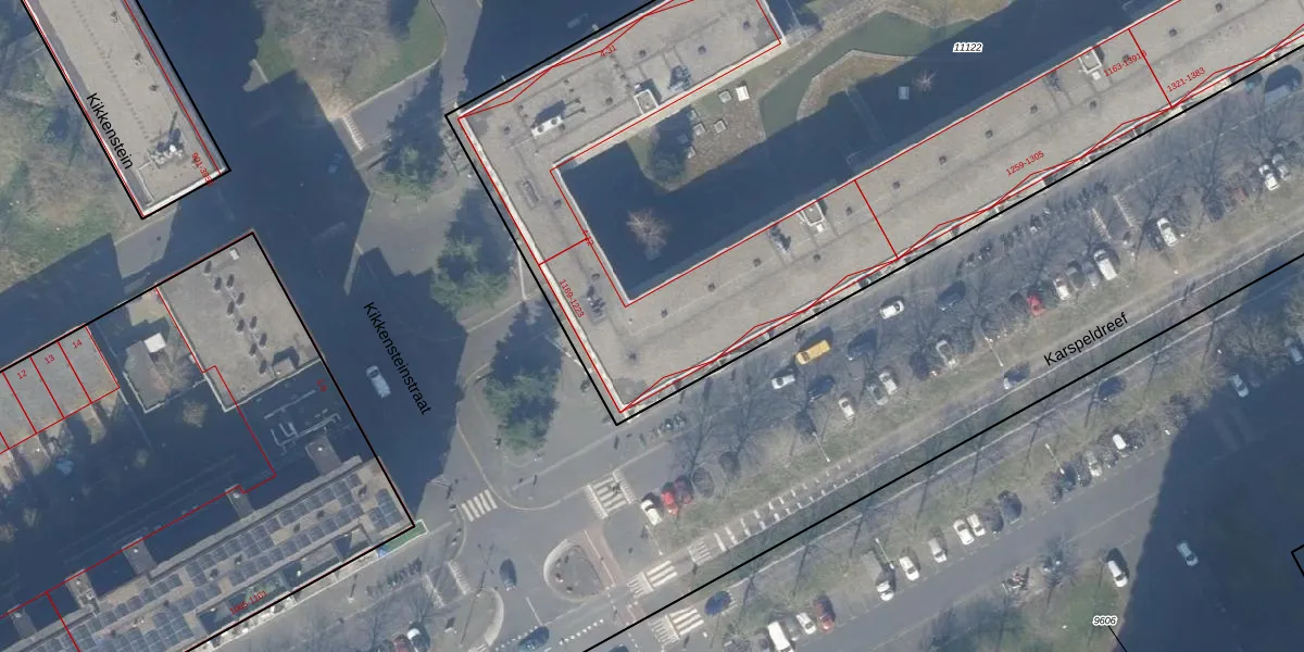Karspeldreef 1187 is gelegen op kadastraal perceel WPK02L11122. Deze kadastrale aanduiding is uniek en wordt gebruikt door het Kadaster om eigendomsrechten en andere zakelijke rechten vast te leggen. Het perceel maakt onderdeel uit van de kadastrale gemeente Weesperkarspel.