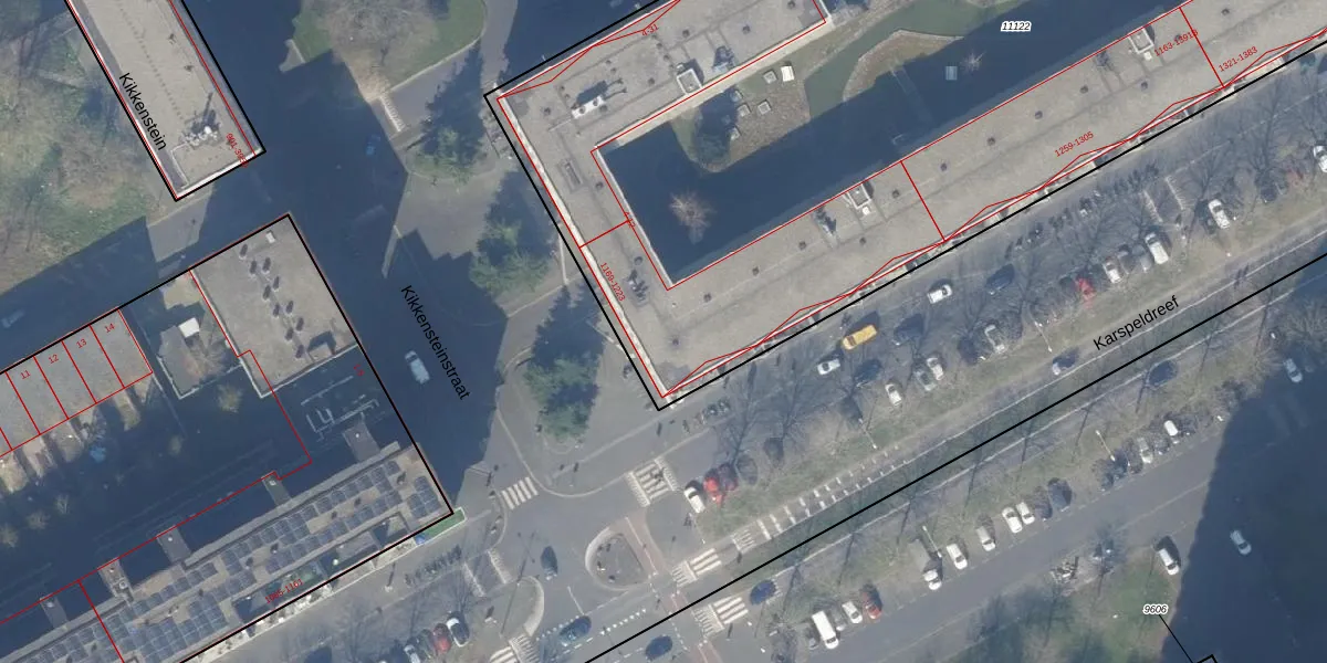 Het perceel waarop Karspeldreef 1199 staat heeft een oppervlakte van 1,0 ha. Dit is een zeer groot perceel. De perceeloppervlakte wordt geregistreerd door het Kadaster. Gedetailleerde informatie over de maten van dit perceel kunt u vinden in het rapport Kadastrale kaart met maatvoering van Karspeldreef 1199.