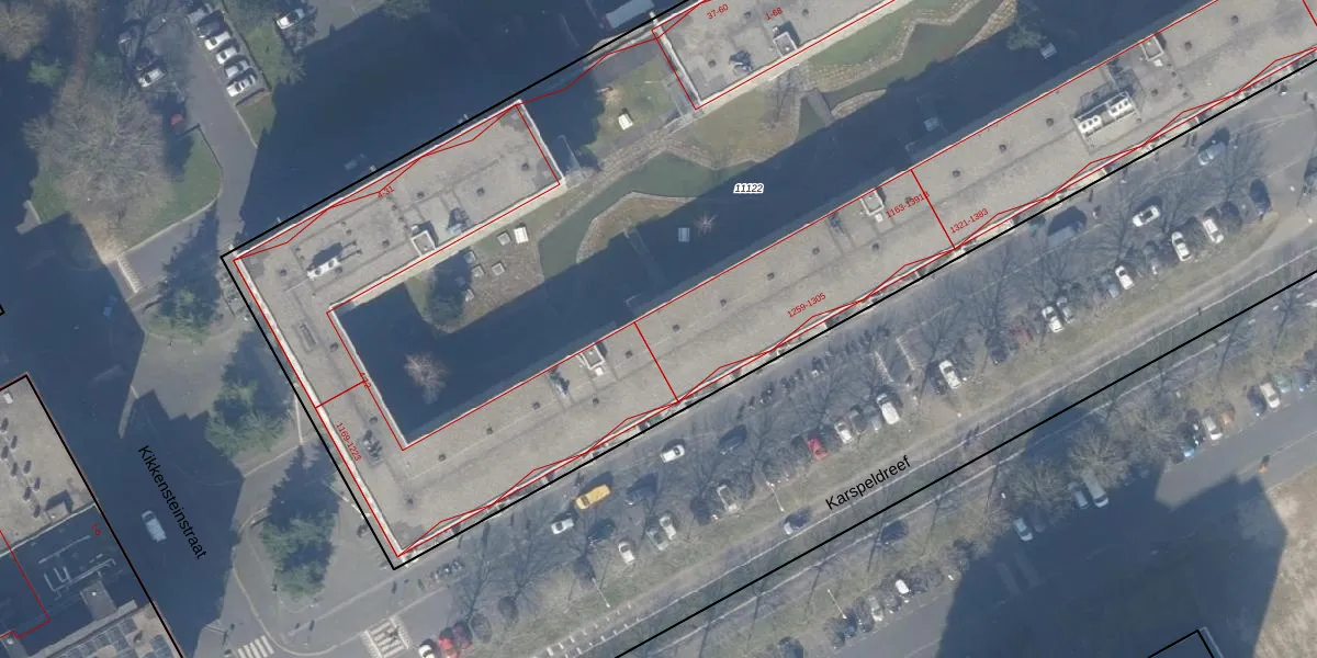 Karspeldreef 1271 is gelegen op kadastraal perceel WPK02L11122. Deze kadastrale aanduiding is uniek en wordt gebruikt door het Kadaster om eigendomsrechten en andere zakelijke rechten vast te leggen. Het perceel maakt onderdeel uit van de kadastrale gemeente Weesperkarspel.