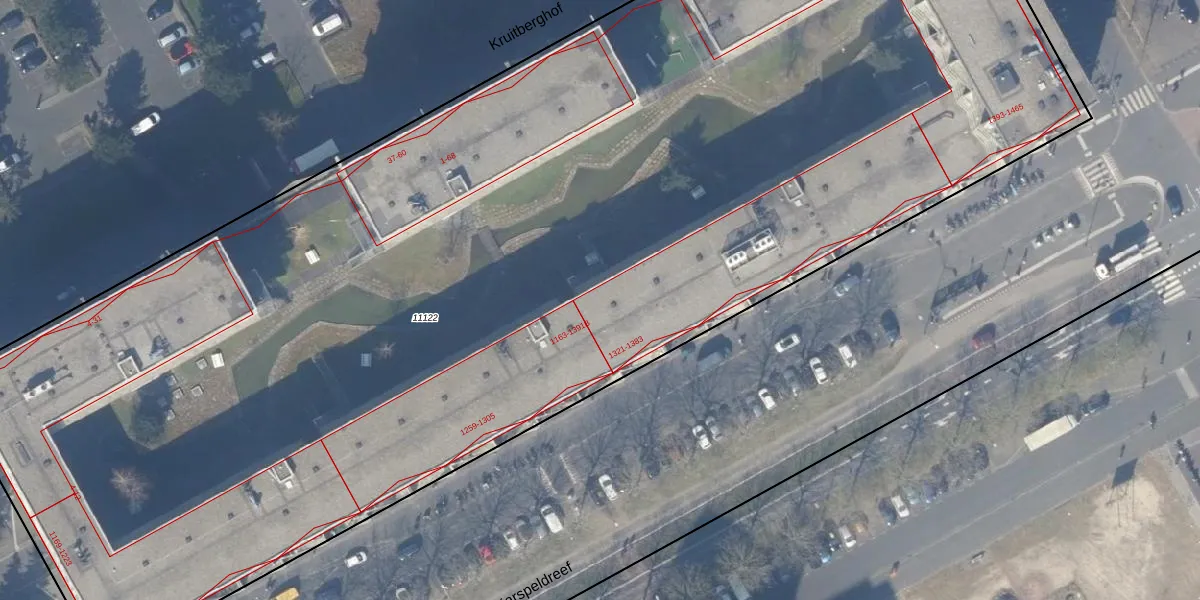Het perceel waarop Karspeldreef 1337 staat heeft een oppervlakte van 1,0 ha. Dit is een zeer groot perceel. De perceeloppervlakte wordt geregistreerd door het Kadaster. Gedetailleerde informatie over de maten van dit perceel kunt u vinden in het rapport Kadastrale kaart met maatvoering van Karspeldreef 1337.