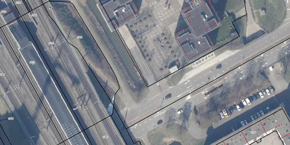 Het perceel waarop Karspeldreef 157-L staat heeft een oppervlakte van 7380 m². Dit is een zeer groot perceel. De perceeloppervlakte wordt geregistreerd door het Kadaster. Gedetailleerde informatie over de maten van dit perceel kunt u vinden in het rapport Kadastrale kaart met maatvoering van Karspeldreef 157-L.