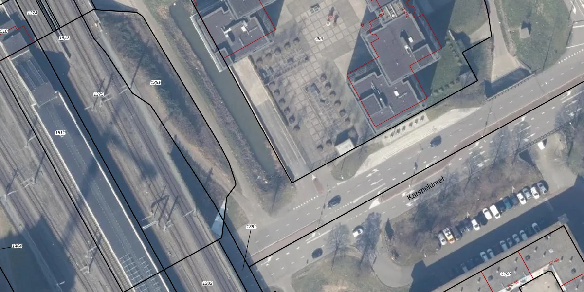 Het adres is gelegen op perceel 496 in de sectie M en de kadastrale gemeente Weesperkarspel. De kadastrale aanduiding is aldus WPK02-M-496. Het perceel is met 7380 m² relatief groot. Het gemiddelde ligt in de kadastrale gemeente Weesperkarspel op 1744,39 m². De grootste perceeloppervlakte in de kadastrale gemeente is 1,04 km². De kleinste oppervlakte bedraagt 0 m². Op het perceel liggen in totaal 724 adressen. In de Basisregistratie Kadaster (BRK) werden de grenzen van het perceel geregistreerd op 07-11-2005.
