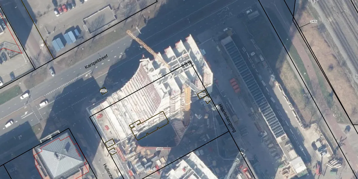 Het adres is gelegen op perceel 1694 in de sectie M en de kadastrale gemeente Weesperkarspel. De kadastrale aanduiding is aldus WPK02-M-1694. De gemiddelde perceeloppervlakte in de kadastrale gemeente Weesperkarspel is 1744,39 m². Dit perceel is met zijn 2679 m² dus groter dan gemiddeld. Het grootste perceel in de kadastrale gemeente is 1,04 km². Het kleinste perceel heeft een oppervlakte van 0 m². Op het perceel liggen in totaal 329 adressen. In de Basisregistratie Kadaster (BRK) werden de grenzen van het perceel geregistreerd op 13-04-2022.