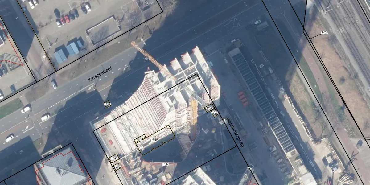 Het perceel waarop Karspeldreef 16-B-34 staat heeft een oppervlakte van 2679 m². Dit is een zeer groot perceel. De perceeloppervlakte wordt geregistreerd door het Kadaster. Gedetailleerde informatie over de maten van dit perceel kunt u vinden in het rapport Kadastrale kaart met maatvoering van Karspeldreef 16-B-34.