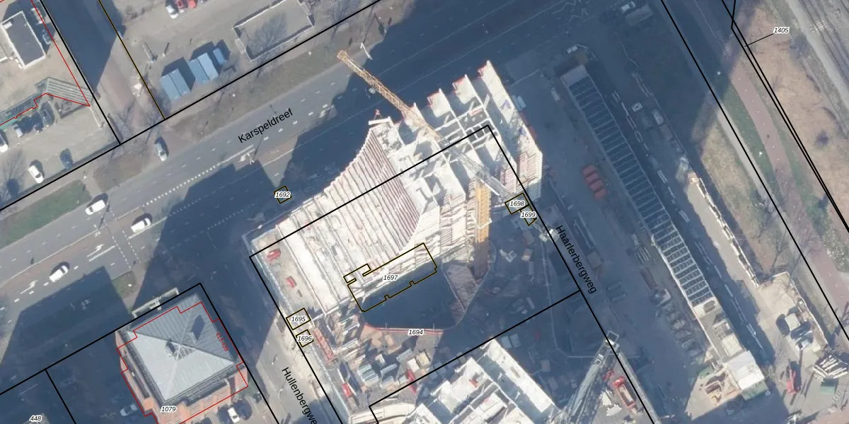 Het perceel waarop Karspeldreef 16-B-115 staat heeft een oppervlakte van 2679 m². Dit is een zeer groot perceel. De perceeloppervlakte wordt geregistreerd door het Kadaster. Gedetailleerde informatie over de maten van dit perceel kunt u vinden in het rapport Kadastrale kaart met maatvoering van Karspeldreef 16-B-115.