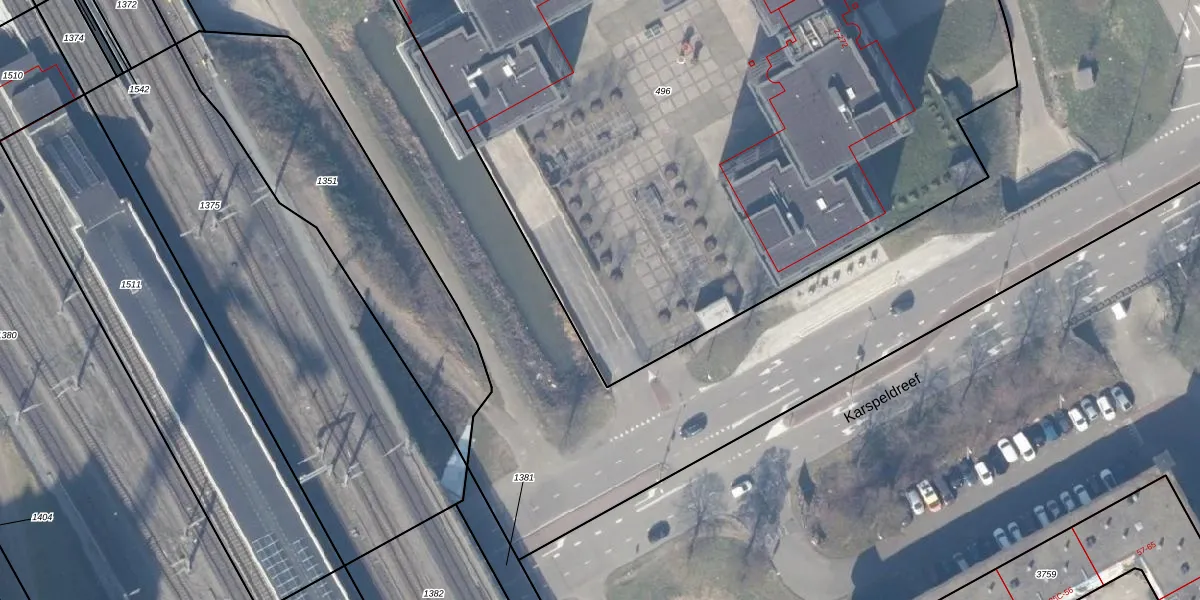Het adres is gelegen op perceel 496 in de sectie M en de kadastrale gemeente Weesperkarspel. De kadastrale aanduiding is aldus WPK02-M-496. Het perceel is met 7380 m² relatief groot. Het gemiddelde ligt in de kadastrale gemeente Weesperkarspel op 1744,39 m². De grootste perceeloppervlakte in de kadastrale gemeente is 1,04 km². De kleinste oppervlakte bedraagt 0 m². Er zijn 724 adressen aanwezig op het perceel. De huidige grenzen van het perceel zijn digitaal in de Basisregistratie Kadaster (BRK) geregistreerd op 07-11-2005.