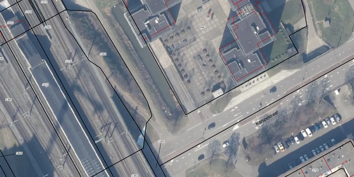 Karspeldreef 165-T is gelegen op kadastraal perceel WPK02M496. Deze kadastrale aanduiding is uniek en wordt gebruikt door het Kadaster om eigendomsrechten en andere zakelijke rechten vast te leggen. Het perceel maakt onderdeel uit van de kadastrale gemeente Weesperkarspel.