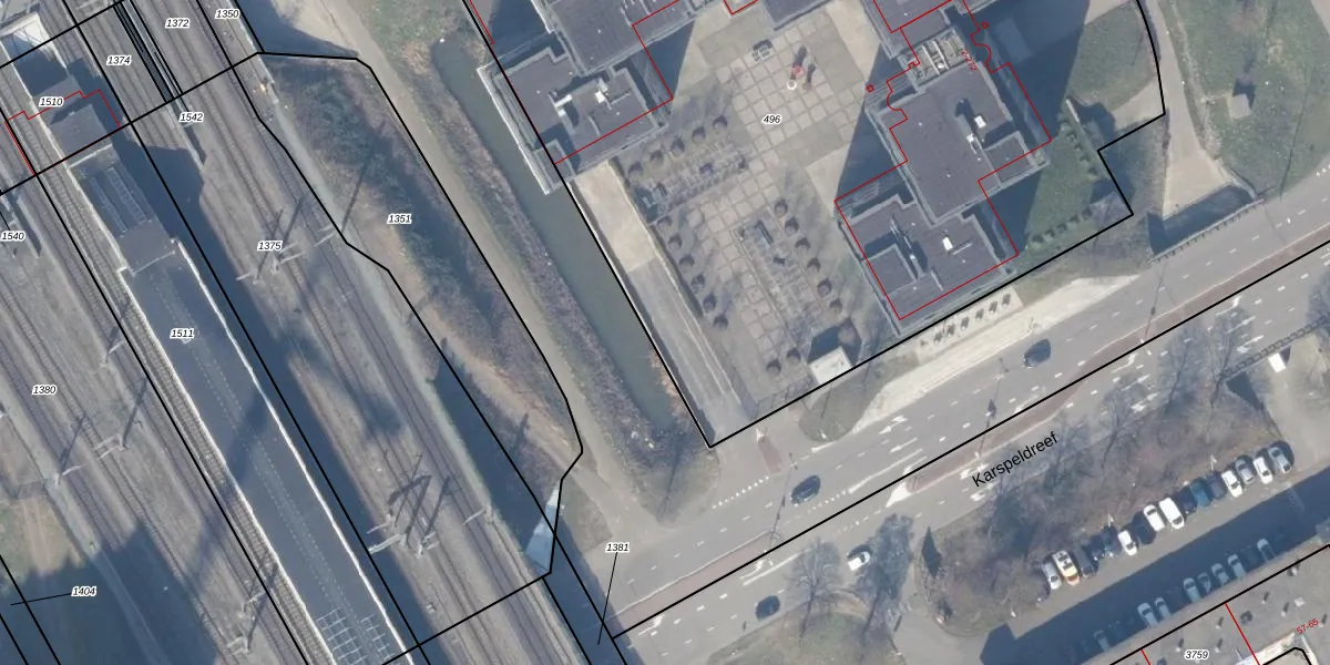 Het adres is gelegen op perceel 496 in de sectie M en de kadastrale gemeente Weesperkarspel. De kadastrale aanduiding is aldus WPK02-M-496. Het perceel is met 7380 m² relatief groot. Het gemiddelde ligt in de kadastrale gemeente Weesperkarspel op 1744,39 m². Het grootste perceel in de kadastrale gemeente is 1,04 km². Het kleinste perceel heeft een oppervlakte van 0 m². Op het perceel zijn 724 adressen aanwezig. De laatste wijziging in het de Basisregistratie Kadaster (BRK) was op 07-11-2005.