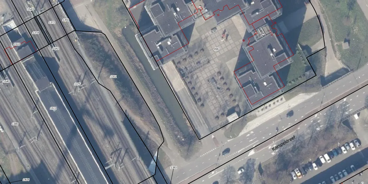 Het adres is gelegen op perceel 496 in de sectie M en de kadastrale gemeente Weesperkarspel. De kadastrale aanduiding is aldus WPK02-M-496. Het perceel is met 7380 m² relatief groot. Het gemiddelde ligt in de kadastrale gemeente Weesperkarspel op 1744,39 m². De grootste perceeloppervlakte in de kadastrale gemeente is 1,04 km². De kleinste oppervlakte bedraagt 0 m². Op het perceel zijn 724 adressen aanwezig. De laatste wijziging in het de Basisregistratie Kadaster (BRK) was op 07-11-2005.