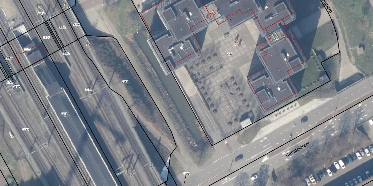 Het adres is gelegen op perceel 496 in de sectie M en de kadastrale gemeente Weesperkarspel. De kadastrale aanduiding is aldus WPK02-M-496. Het perceel is met 7380 m² relatief groot. Het gemiddelde ligt in de kadastrale gemeente Weesperkarspel op 1744,39 m². De grootste perceeloppervlakte in de kadastrale gemeente is 1,04 km². De kleinste oppervlakte bedraagt 0 m². Op het perceel liggen in totaal 724 adressen. De laatste wijziging in het de Basisregistratie Kadaster (BRK) was op 07-11-2005.
