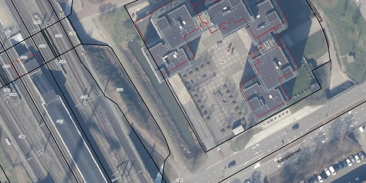 Het adres is gelegen op perceel 496 in de sectie M en de kadastrale gemeente Weesperkarspel. De kadastrale aanduiding is aldus WPK02-M-496. Het perceel is met 7380 m² relatief groot. Het gemiddelde ligt in de kadastrale gemeente Weesperkarspel op 1744,39 m². De grootste perceeloppervlakte in de kadastrale gemeente is 1,04 km². De kleinste oppervlakte bedraagt 0 m². Op het perceel liggen in totaal 724 adressen. In de Basisregistratie Kadaster (BRK) werden de grenzen van het perceel geregistreerd op 07-11-2005.