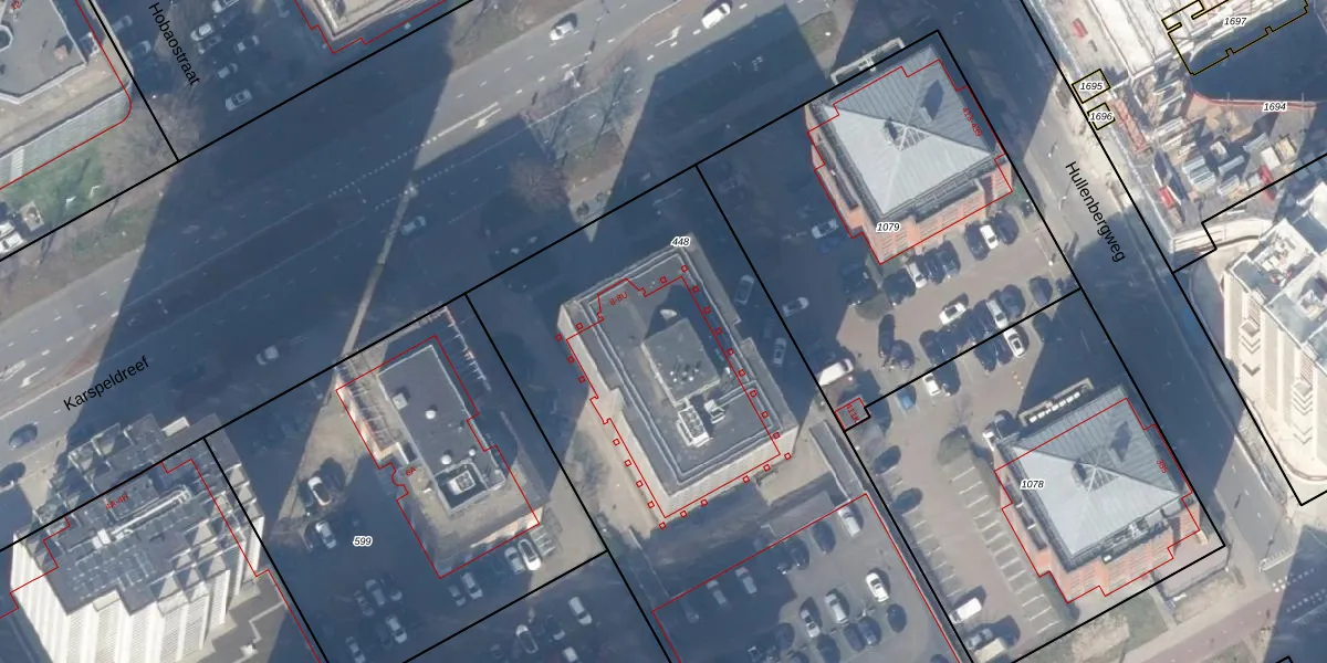 Het perceel waarop Karspeldreef 8-B staat heeft een oppervlakte van 3524 m². Dit is een zeer groot perceel. De perceeloppervlakte wordt geregistreerd door het Kadaster. Gedetailleerde informatie over de maten van dit perceel kunt u vinden in het rapport Kadastrale kaart met maatvoering van Karspeldreef 8-B.