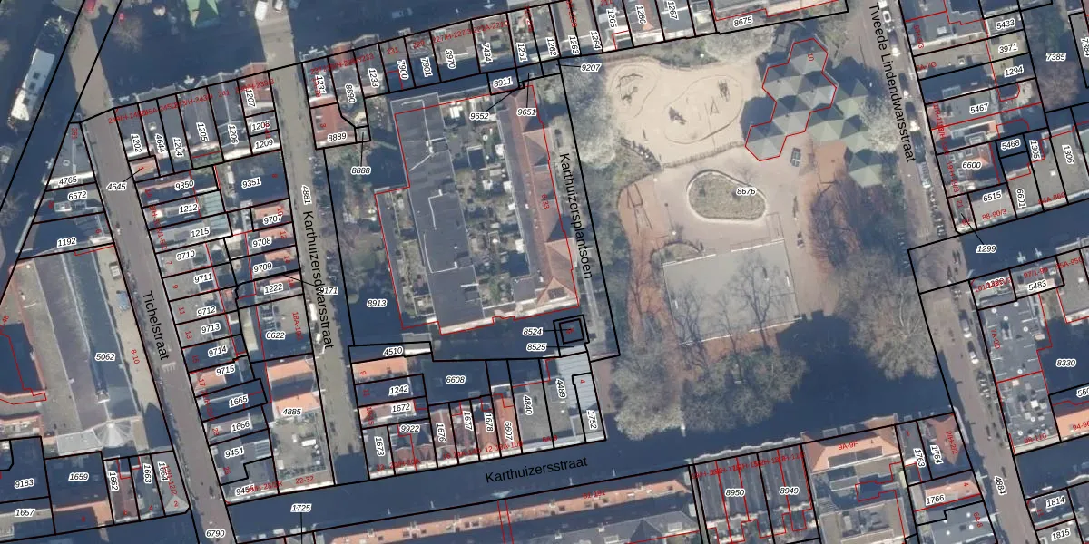 Het perceel waarop Karthuizersplantsoen 30 staat heeft een oppervlakte van 2193 m². Dit is een zeer groot perceel. De perceeloppervlakte wordt geregistreerd door het Kadaster. Gedetailleerde informatie over de maten van dit perceel kunt u vinden in het rapport Kadastrale kaart met maatvoering van Karthuizersplantsoen 30.
