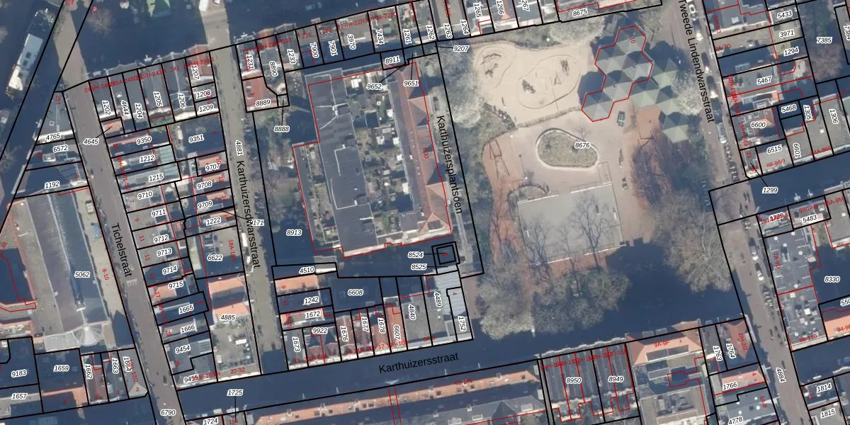 Het perceel waarop Karthuizersplantsoen 31 staat heeft een oppervlakte van 2193 m². Dit is een zeer groot perceel. De perceeloppervlakte wordt geregistreerd door het Kadaster. Gedetailleerde informatie over de maten van dit perceel kunt u vinden in het rapport Kadastrale kaart met maatvoering van Karthuizersplantsoen 31.
