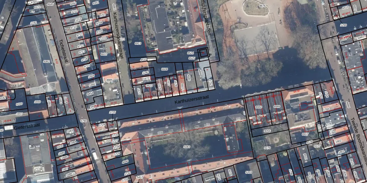 Karthuizersstraat 10-A is gelegen op kadastraal perceel ASD08L6607. Deze kadastrale aanduiding is uniek en wordt gebruikt door het Kadaster om eigendomsrechten en andere zakelijke rechten vast te leggen. Het perceel maakt onderdeel uit van de kadastrale gemeente Amsterdam.