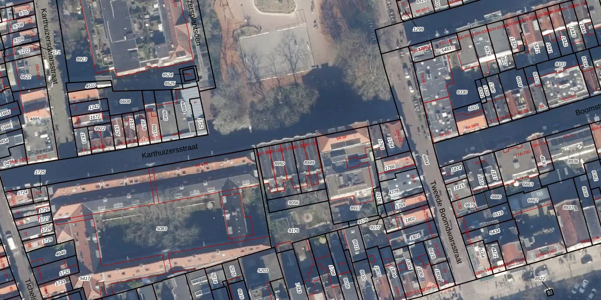 Karthuizersstraat 13-2 is gelegen op kadastraal perceel ASD08L8949. Deze kadastrale aanduiding is uniek en wordt gebruikt door het Kadaster om eigendomsrechten en andere zakelijke rechten vast te leggen. Het perceel maakt onderdeel uit van de kadastrale gemeente Amsterdam.