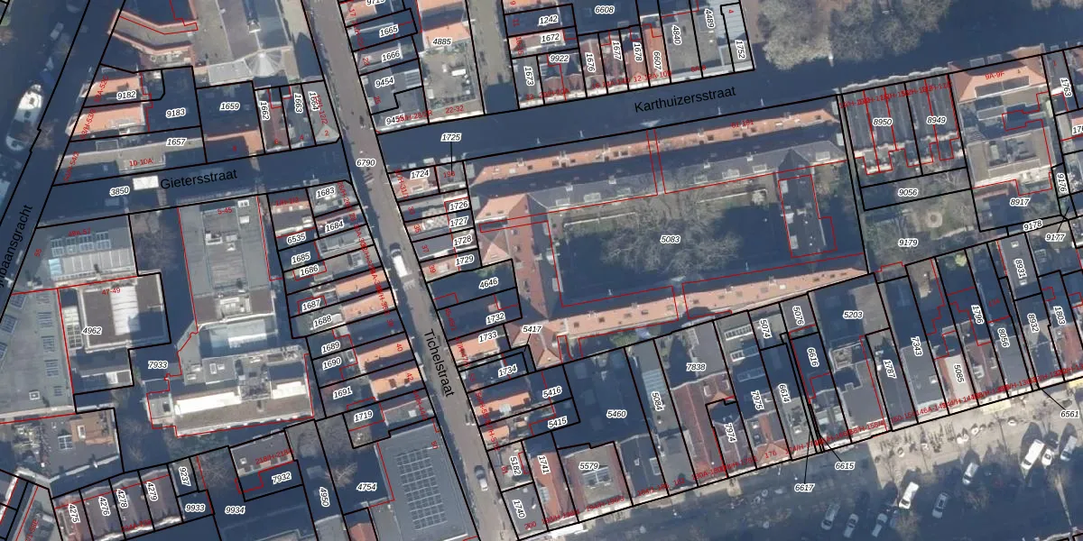 Het perceel waarop Karthuizersstraat 149 staat heeft een oppervlakte van 2525 m². Dit is een zeer groot perceel. De perceeloppervlakte wordt geregistreerd door het Kadaster. Gedetailleerde informatie over de maten van dit perceel kunt u vinden in het rapport Kadastrale kaart met maatvoering van Karthuizersstraat 149.