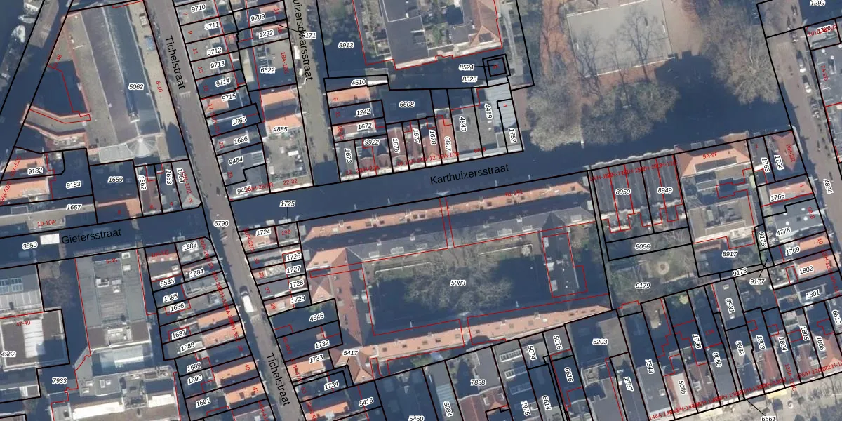 Het perceel waarop Karthuizersstraat 191 staat heeft een oppervlakte van 2525 m². Dit is een zeer groot perceel. De perceeloppervlakte wordt geregistreerd door het Kadaster. Gedetailleerde informatie over de maten van dit perceel kunt u vinden in het rapport Kadastrale kaart met maatvoering van Karthuizersstraat 191.